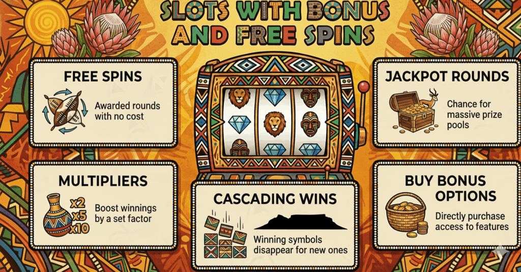 Some South African platforms like Saffaluck commonly include no deposit bonuses or free spin promotions for new users.